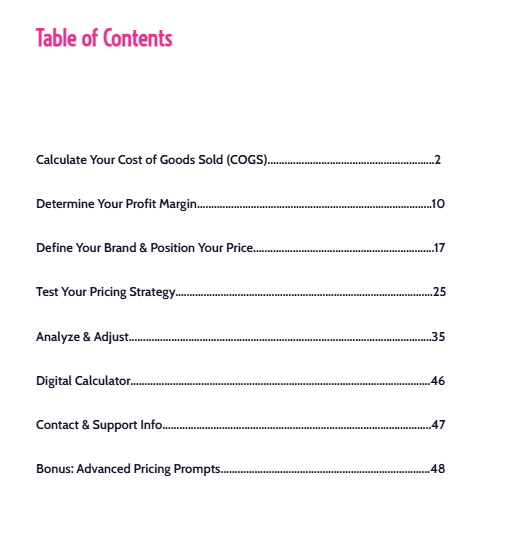 This eBook was very helpful. I am in the process of revamping my business and with the prices of everything going up, it was a great guide for me. Thank you.